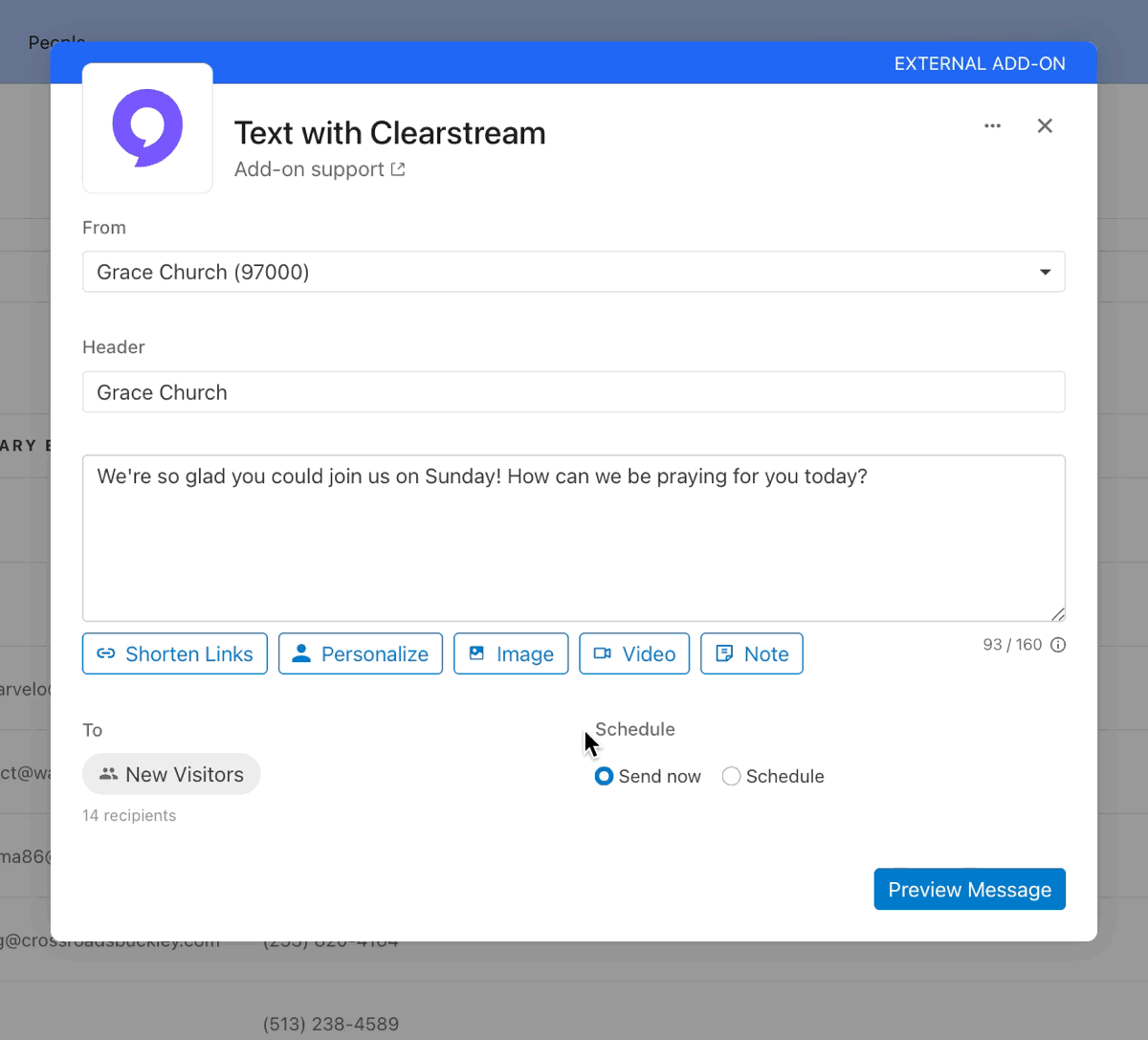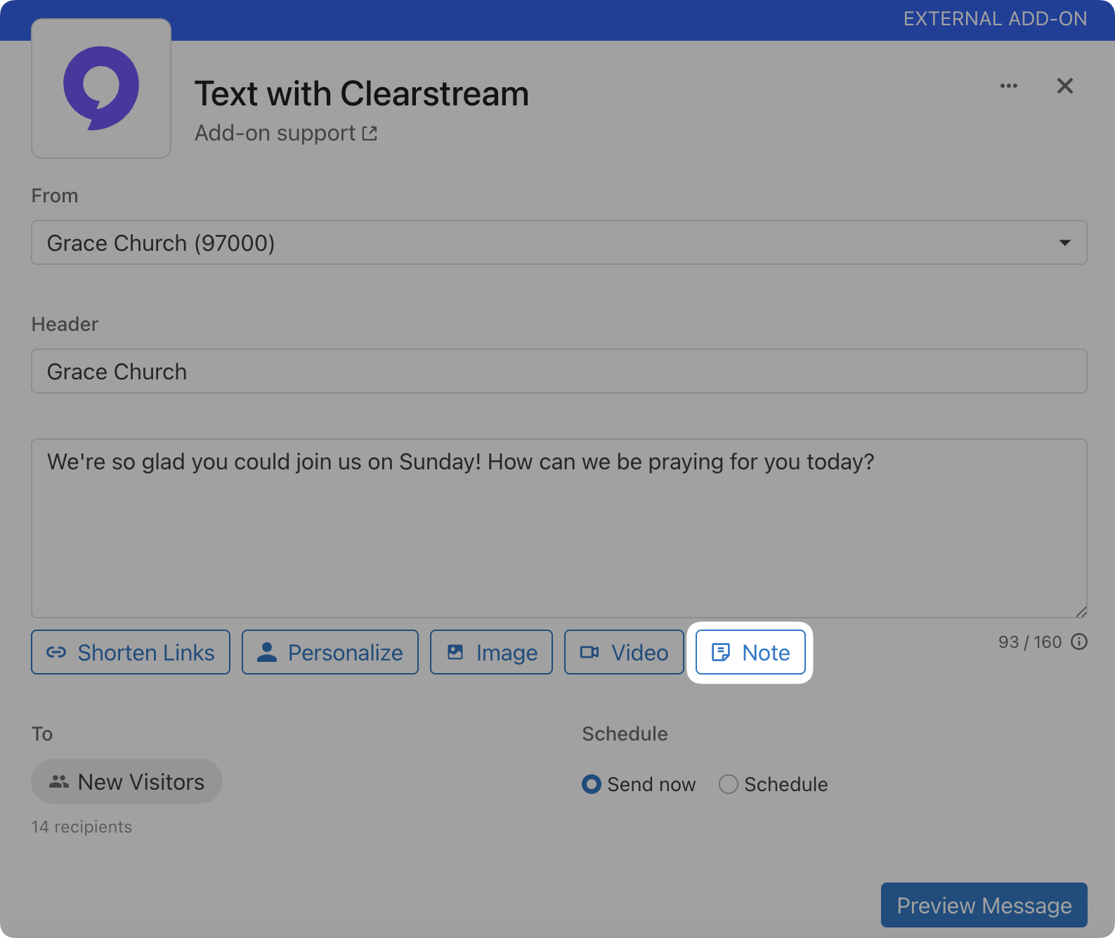 When sending messages using the Planning Center Add-On, you can now attach notes from your Note Library or create a new one.