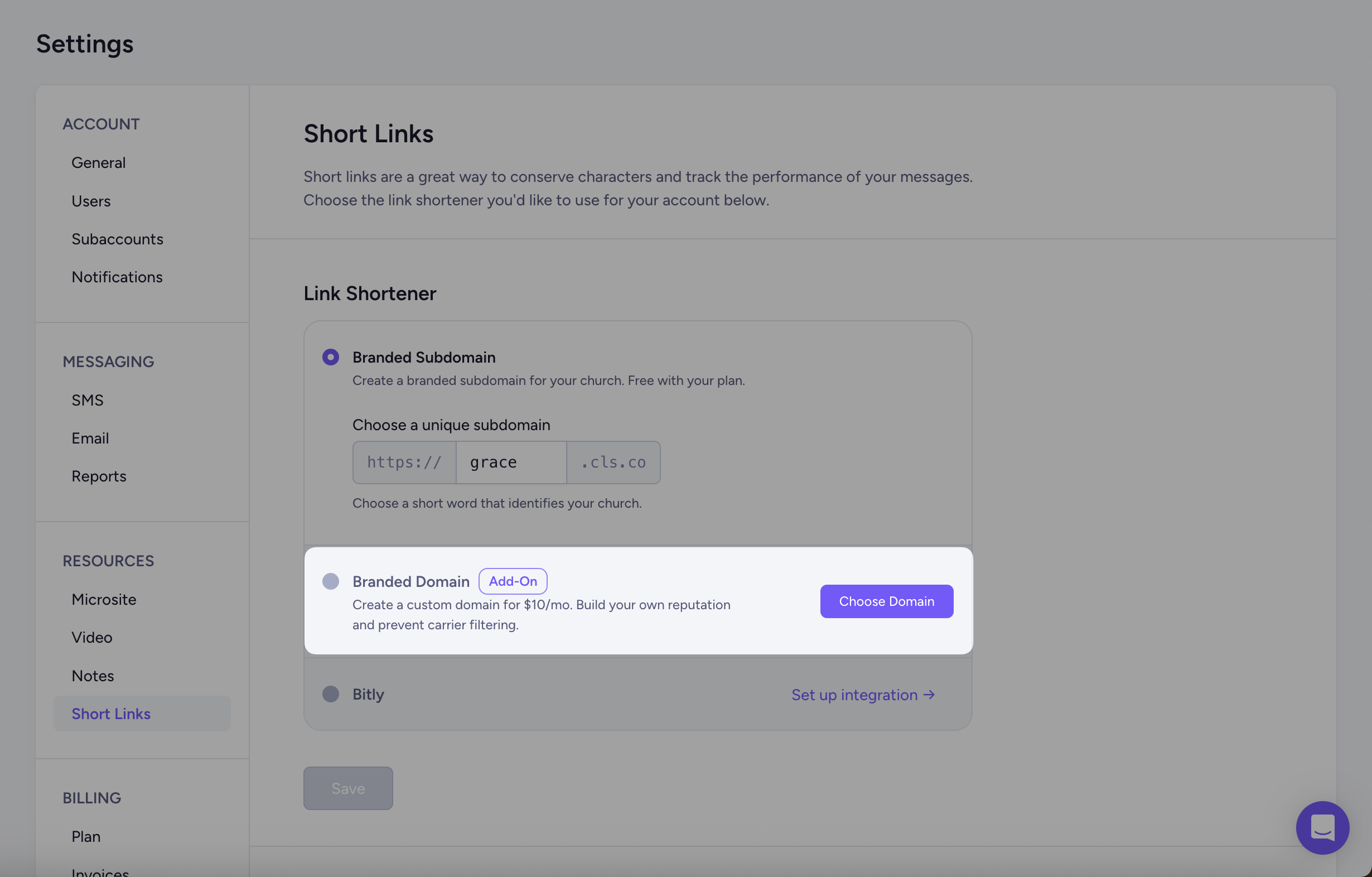 Create a custom-branded domain to use for your shortened links. This feature is a $10/month add-on.